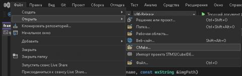 3. Теперь нужно открыть исходник в нашей VS (Файл - Открыть - CMake.. - и тут выбираем нашу папку с исходником, в ней выбираем - CMakeLists.txt).