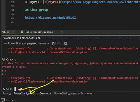 6. Терминал открываеться снизу - PowerShell для разработчиков или сверху Вид - Терминал, или сочетанием клавиш Ctrl + ~ (ё)