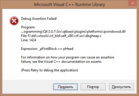 При компиляции Qt и проекта со статическим crt в дебаг-сборке выскакивает ошибка про dbgheap: